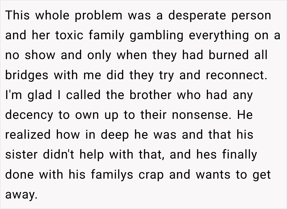 Others, however, showed support: “I’m so glad the brother told and gave you everything to make a fresh start!” wrote one commenter. This division of opinions highlights how social media audiences react differently to real-life drama, with some offering encouragement while others remain skeptical.