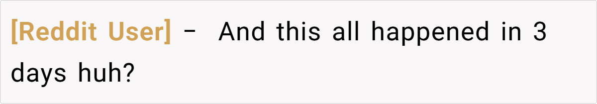 The Reddit community had mixed reactions to the story, with some supporting the original poster and others expressing skepticism about the rapid development of events.
