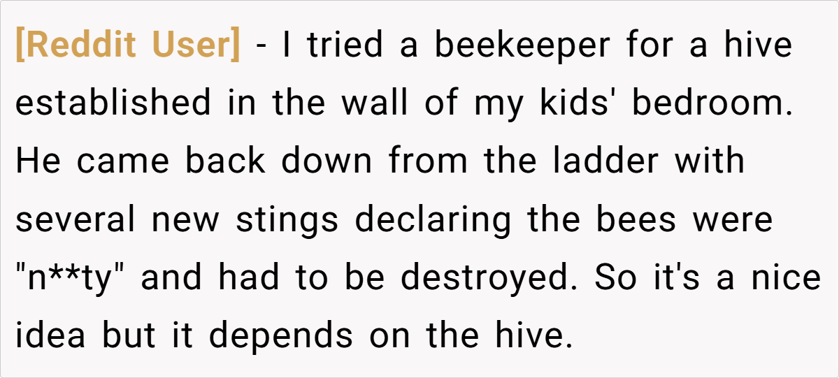 These snippets capture the diverse viewpoints of Redditors, reflecting both the practical and the absurd sides of dealing with an unexpected bee invasion. They remind us that, in any community, there’s always a mix of earnest advice and light-hearted banter.