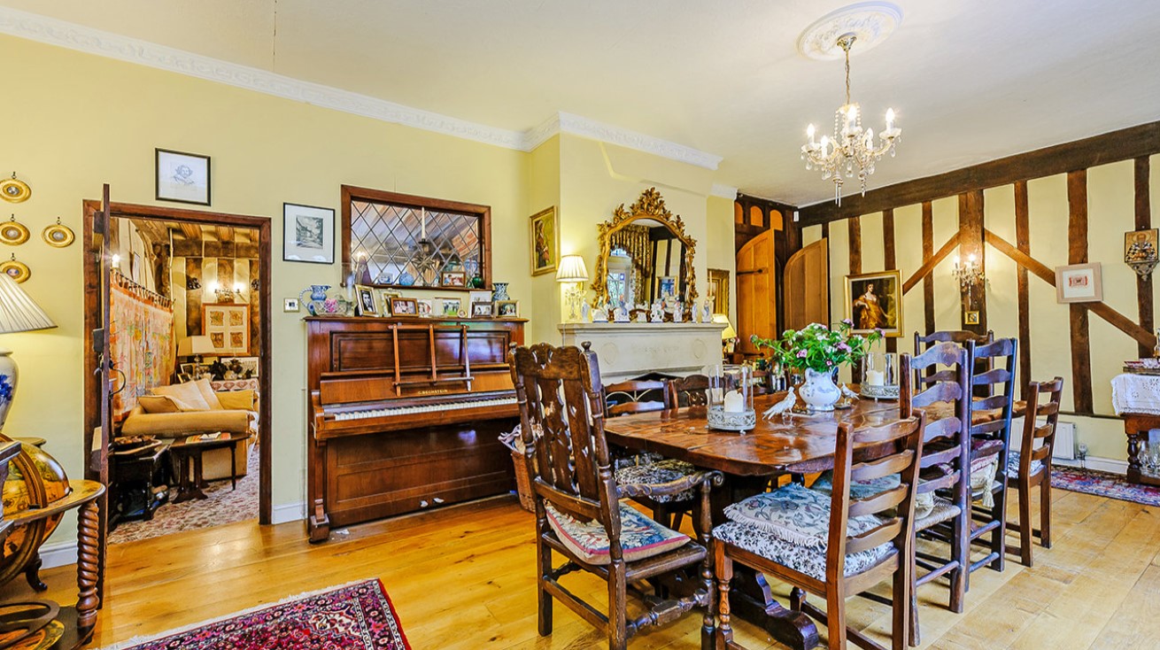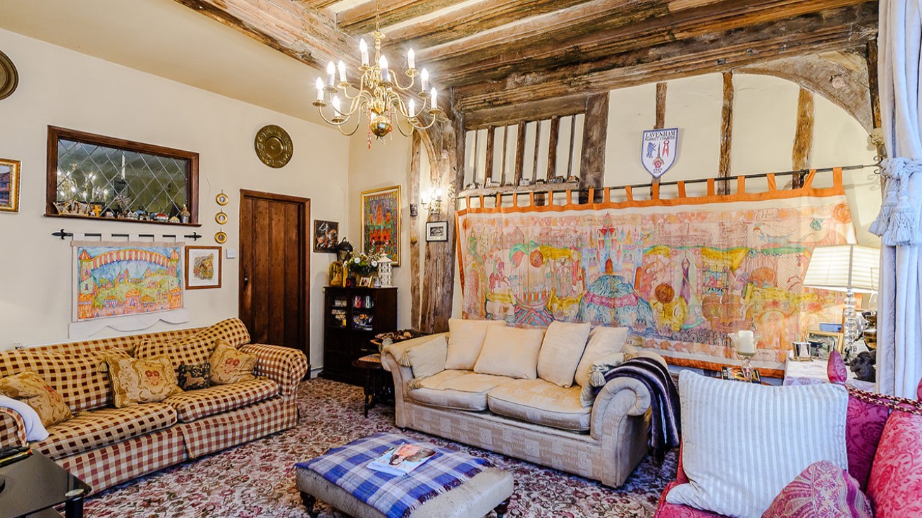 The house is full of historical features, from its timber-framed structure to its medieval paintings and suits of armor.