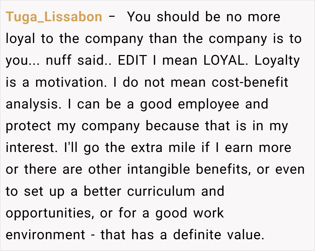 In wrapping up, this discussion invites us to reframe our understanding of career loyalty and advancement. Whether you’re a staunch advocate for long-term commitment or a believer in the power of change, the underlying message is clear: know your worth and don’t be afraid to explore new horizons. What would you do if you found yourself in a similar situation? Share your thoughts and experiences, and join the conversation.