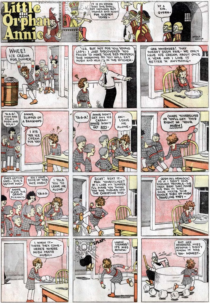 The comic’s political stance reflected those of its creator, Harold Gray. Gray, who became very wealthy from his popular strip since its start in 1924, was earning $100,000 a year by 1934 (equivalent to nearly $2 million today).