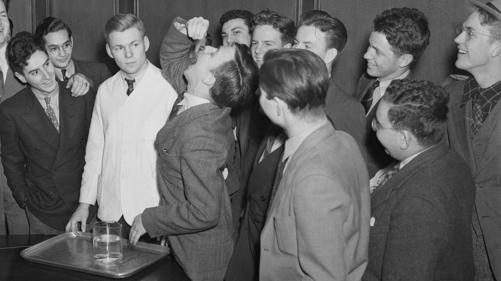 This bizarre trend also inspired other swallowing challenges. College students in Illinois swallowed five baby white mice, 139 live angle worms in Oregon, an entire issue of The New Yorker in Pennsylvania, and pieces of phonograph records at Harvard and the University of Chicago.