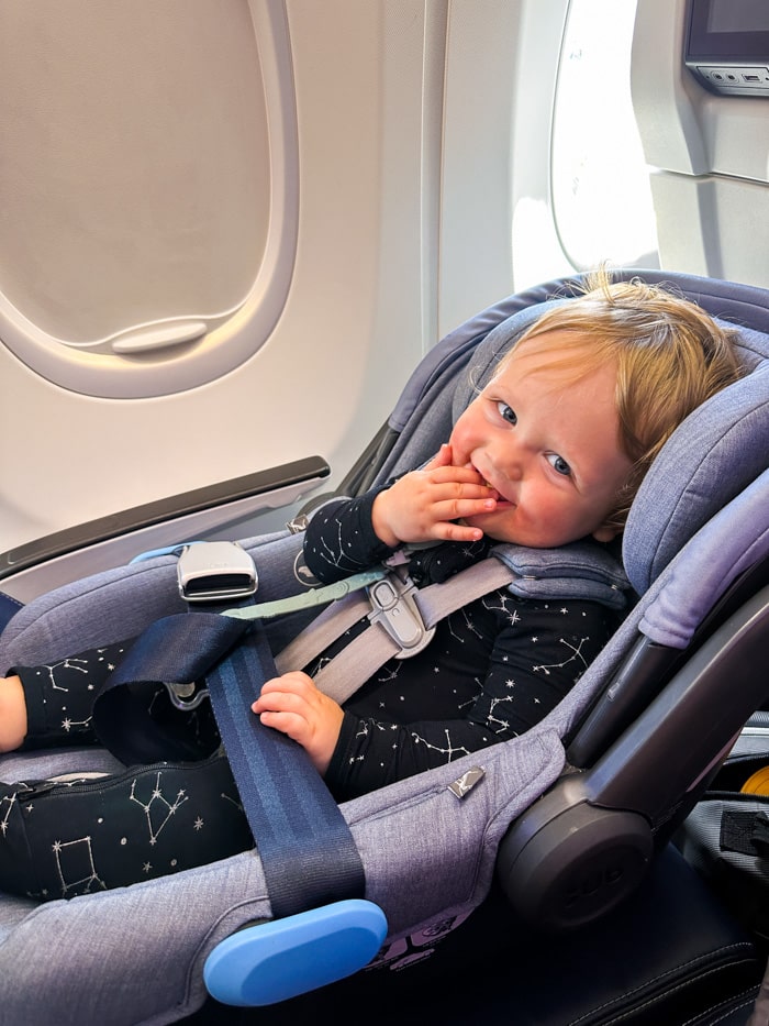 Harness Requirements: For children up to 40 pounds, the FAA recommends using a harnessed car seat or a child safety restraint system. This setup provides the safest experience during all phases of flight, including turbulence.