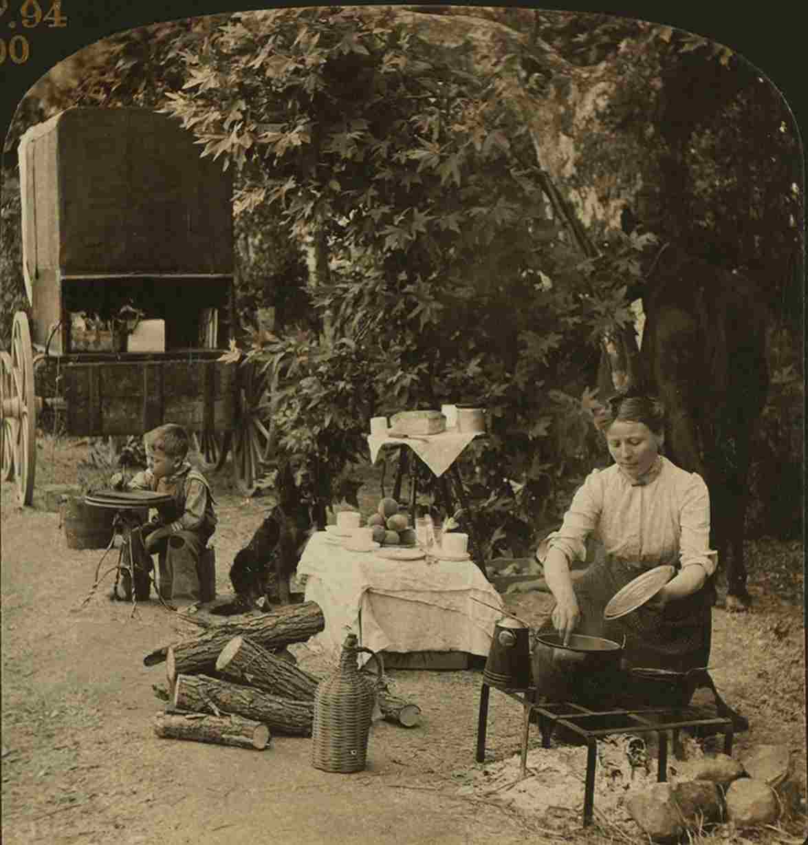 Living outdoors offered several benefits: you could cook meals over an open fire, enjoy the natural coolness of the evening air, and avoid the stuffiness of a house trapped in the summer heat.