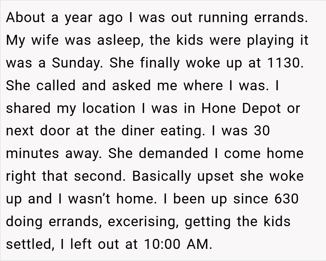When a single, hurtful incident lingers long after the words have been spoken, it can cast a shadow over an entire relationship. Our OP, a 40‑year‑old husband, shares his ongoing struggle with forgiving his wife after a heated argument a year ago. On that fateful Sunday, while he was out running errands and busy caring for their children, his wife woke up late and demanded he come home immediately.