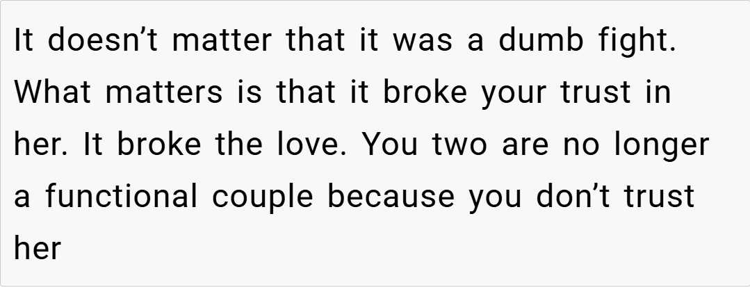 Ultimately, the OP’s inability to forgive his wife’s hurtful words, even a year later, underscores a deep emotional rift that he feels may never heal. While some argue that all relationships have their rough moments and that forgiveness should be offered, many believe that if a single traumatic event continues to poison the atmosphere, it might be time to reconsider whether the relationship is truly healthy.