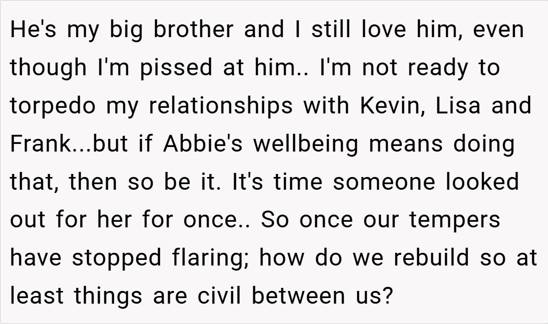 ‘ I (42F) might lose my older brother (47M) after his son (20M) hit his sister (18F). How can I remain civil with them?’