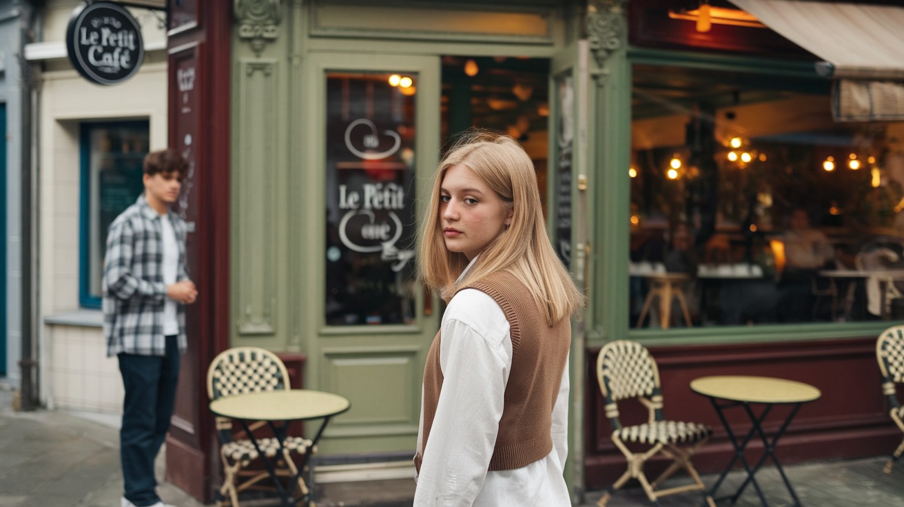 I kept a safe distance, not letting Vivian realize I was following her. After a while, she stopped in front of a small café, where a young man was standing waiting. He looked around Vivian’s age, very youthful, but there was a seriousness in his eyes that made me feel uneasy.