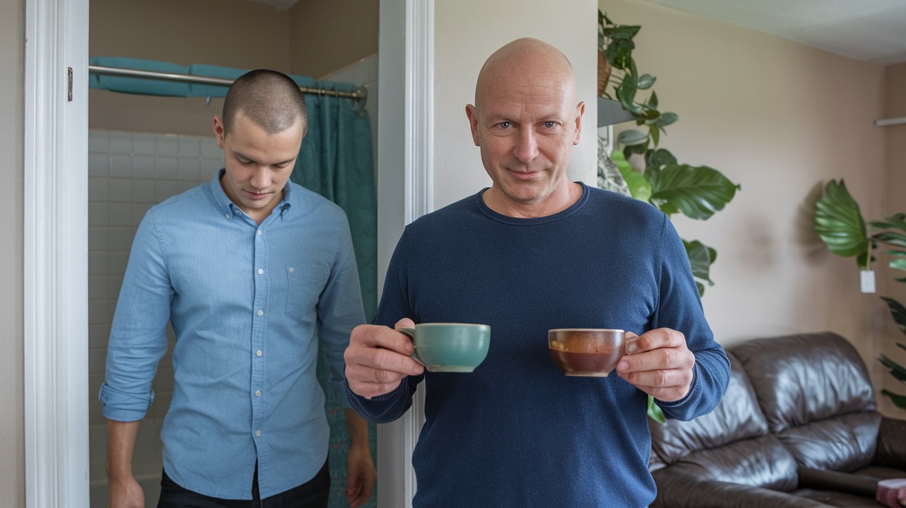 I didn’t know whether to feel angry or relieved. For days, I’d been convinced that Mark was hiding something—someone—from me. But now, standing in front of me, was a man, not the woman I had imagined, wearing Mark’s clothes and sipping tea in our kitchen.
