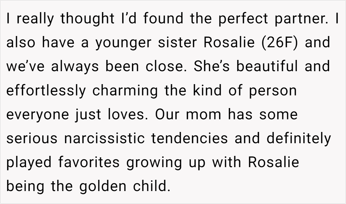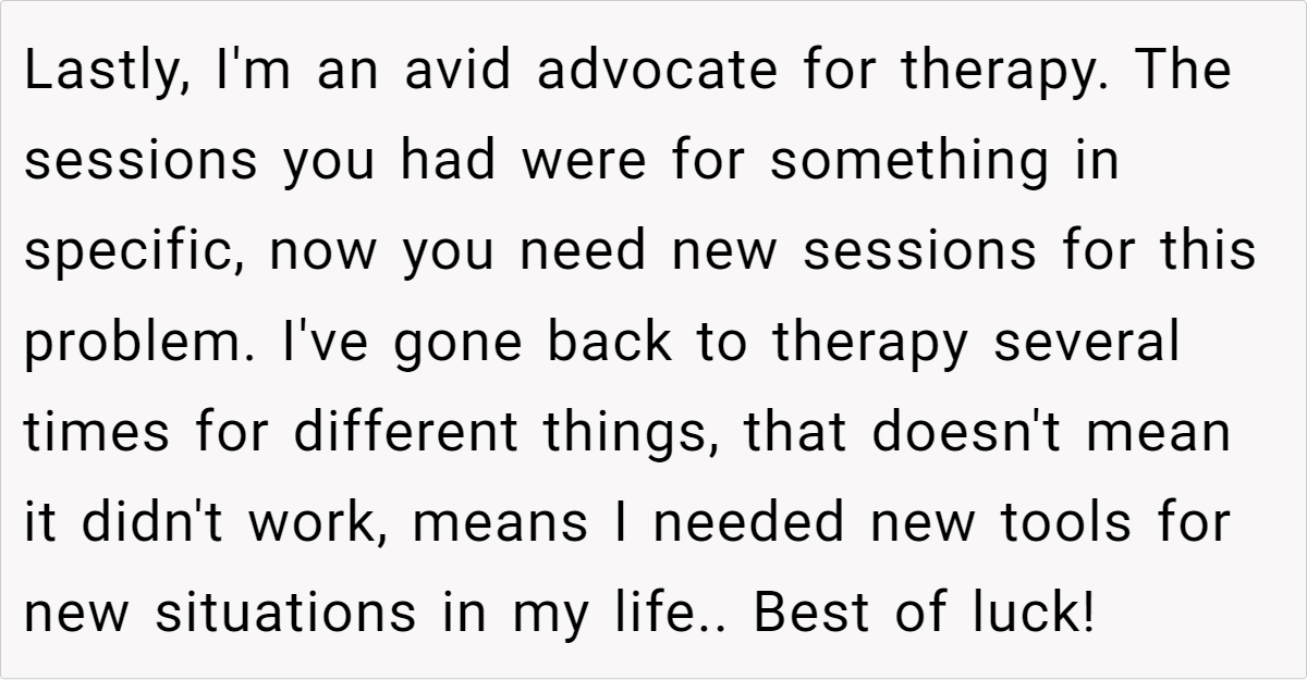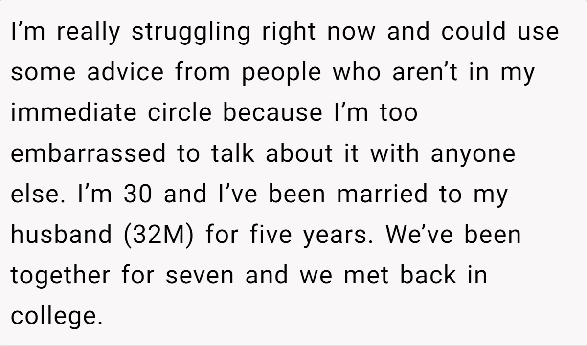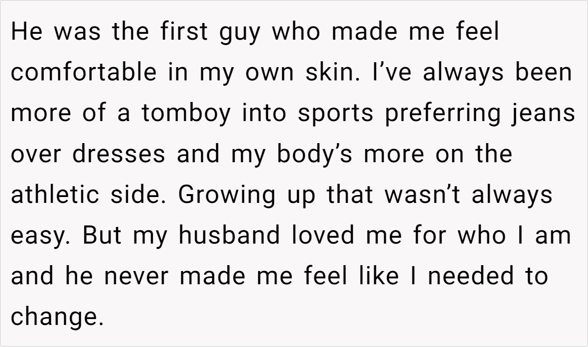 In this case, the wife’s insecurities stem from childhood experiences of being compared to her “golden child” sister and societal pressures to conform to traditional notions of femininity and motherhood.