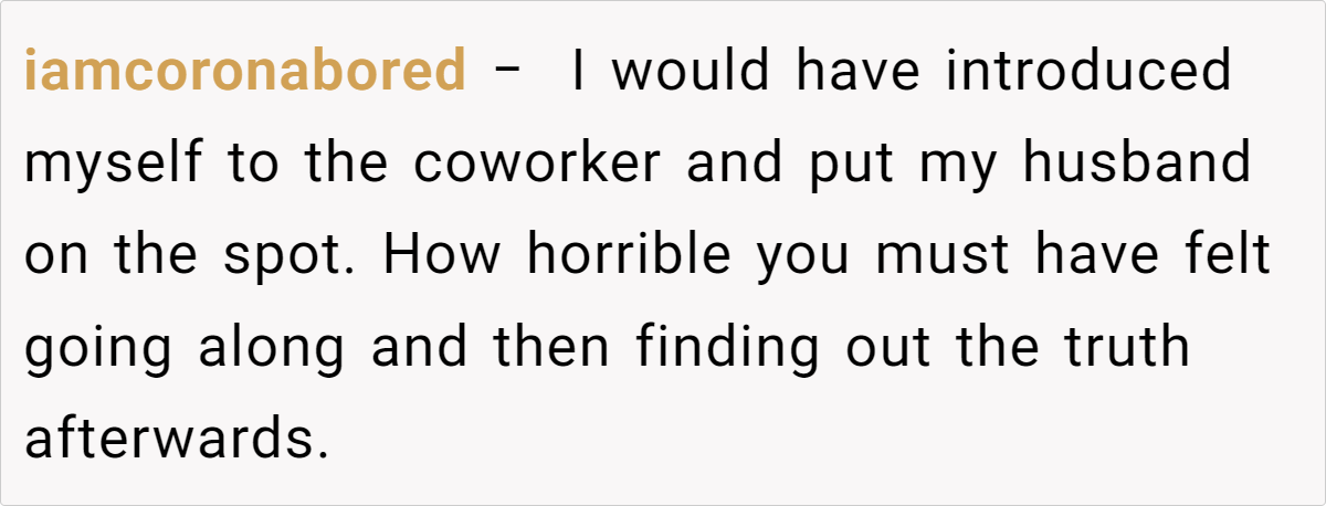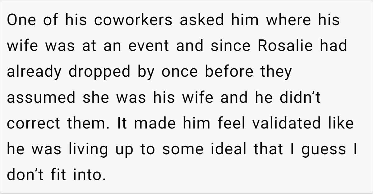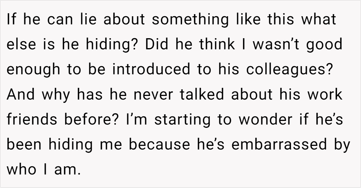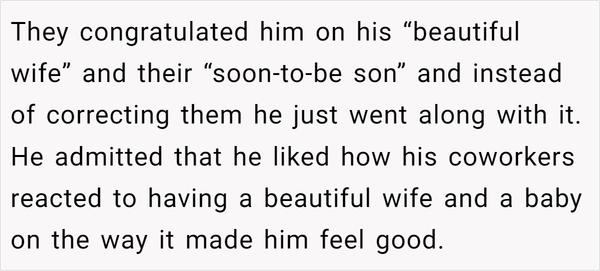The Reddit post below details a woman’s discovery of her husband’s lies about their family structure to his coworkers. His actions, driven by a desire for validation and a skewed perception of societal ideals, expose the woman’s vulnerabilities and insecurities, leaving her questioning her worth and the future of their marriage. This story delves into themes of self-esteem, societal expectations, and the importance of open communication in navigating personal insecurities within a relationship.
