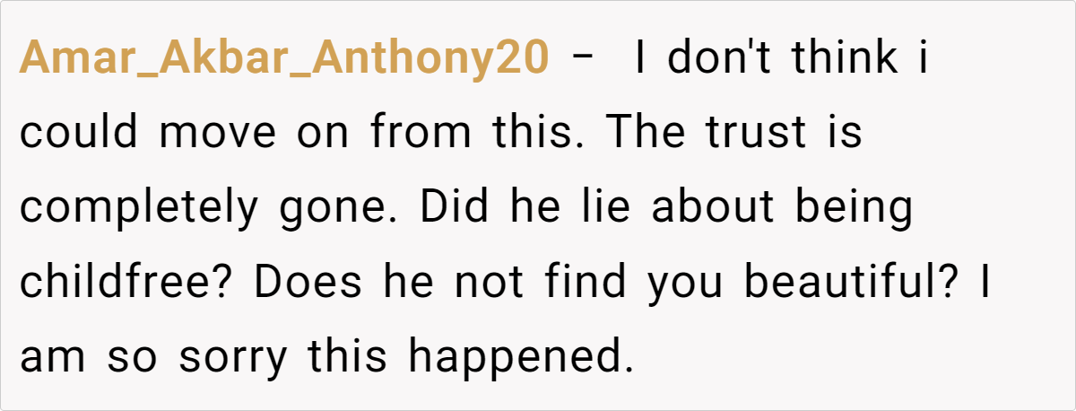 The comments overwhelmingly support the wife, expressing outrage at the husband’s deceptive behavior and emphasizing the importance of self-worth and open communication in a relationship. Many commenters criticize the husband’s lack of remorse and suggest that the wife should prioritize her own well-being, even if it means ending the marriage.