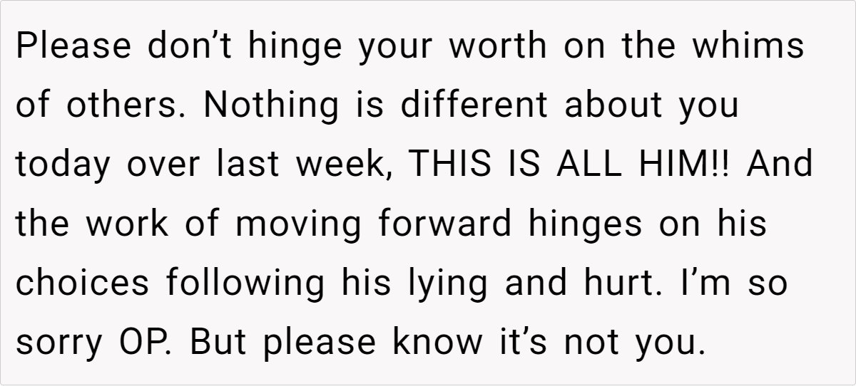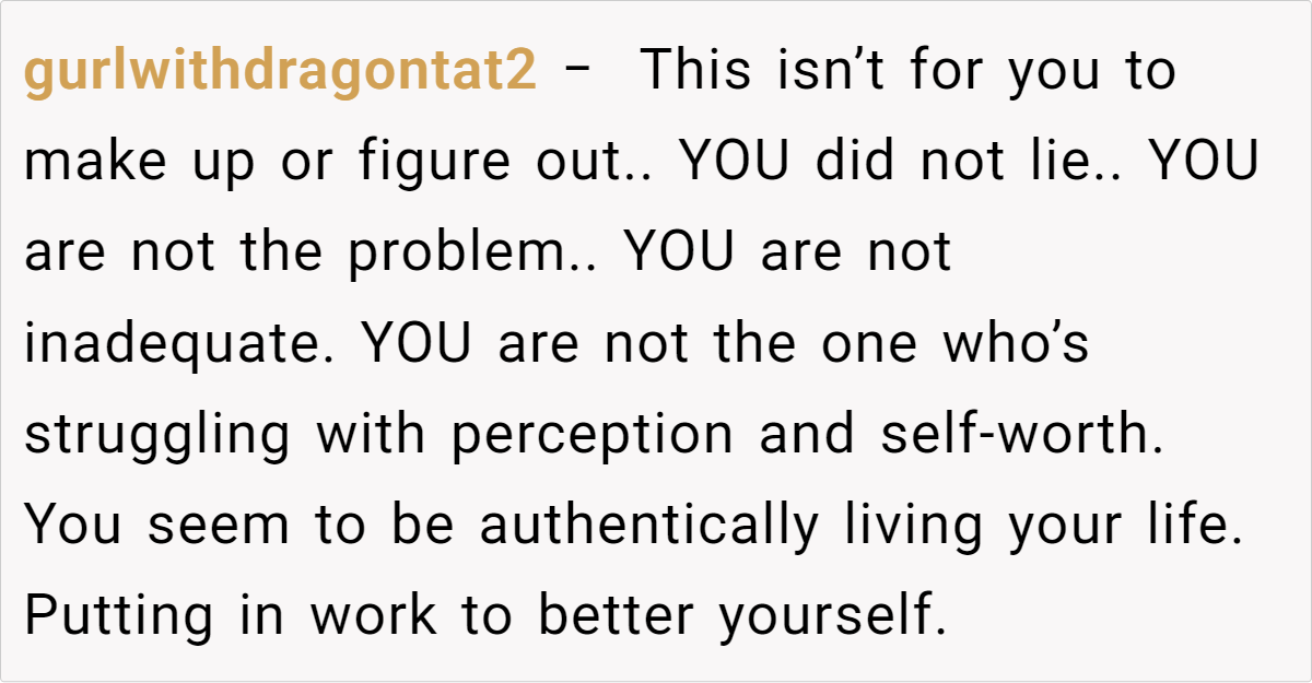 This situation highlights the complex interplay between societal expectations, personal insecurities, and the impact of deceptive behavior within a relationship. According to Dr. Brené Brown, a research professor and author specializing in vulnerability and shame, “Insecurities are often rooted in the fear of not being enough – not thin enough, not successful enough, not lovable enough.” (Source: The Gifts of Imperfection: Let Go of Who You Think You’re Supposed to Be and Embrace Who You Are)
