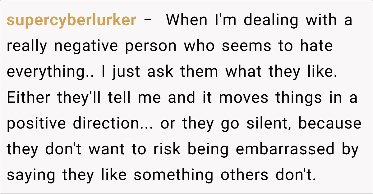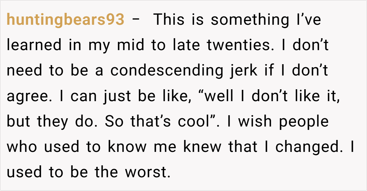 From lighthearted advice to reminders of the simple magic in a polite “it’s not for me,” Redditors share a spectrum of insights. Some underscore the importance of minimizing negatives, while others reveal personal growth in choosing kindness over condescension. Even critiques emerge, proving that no single approach satisfies everyone—but the conversation itself remains a valuable learning experience.