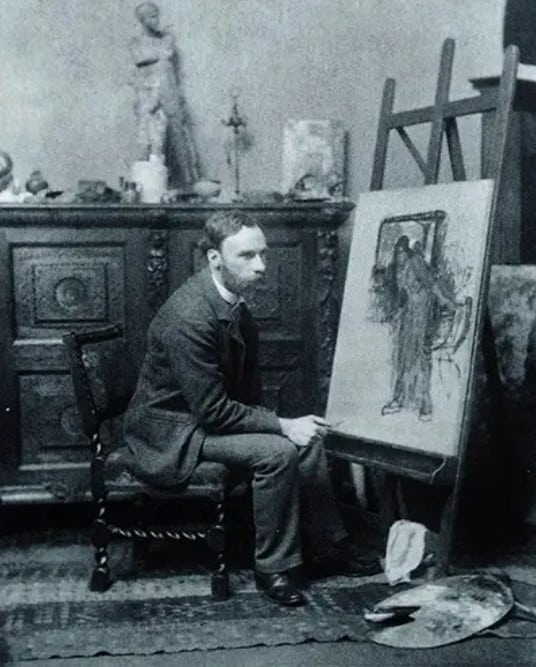 In his later years, he adopted the Pre-Raphaelite approach, creating large watercolors that featured beautiful, tragic, and powerful women.