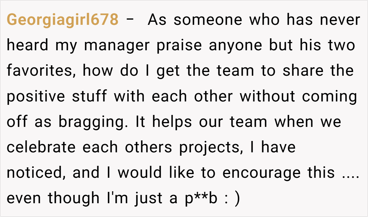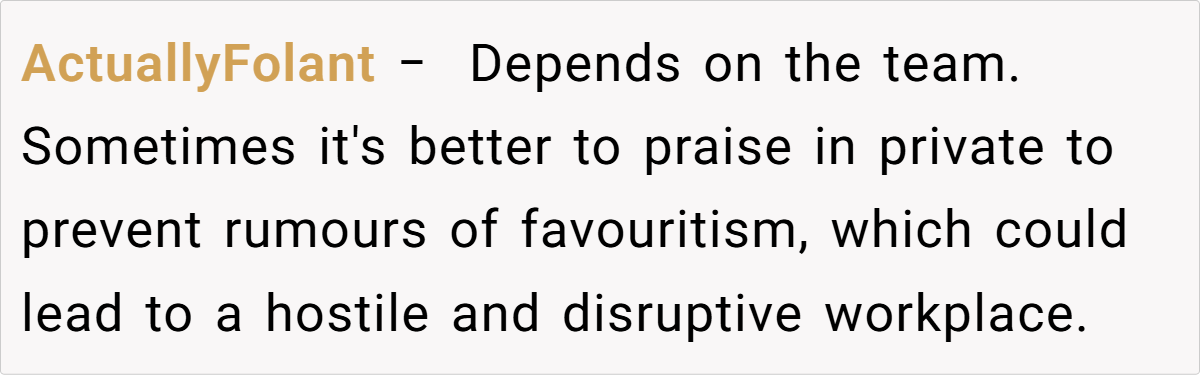 One common theme is the importance of knowing your team’s unique preferences—what works for one may not work for another. Another point raised is that public recognition can sometimes breed favoritism if not handled carefully, so balance is key. Overall, the sentiment is clear: a thoughtful approach to feedback can transform workplace dynamics.