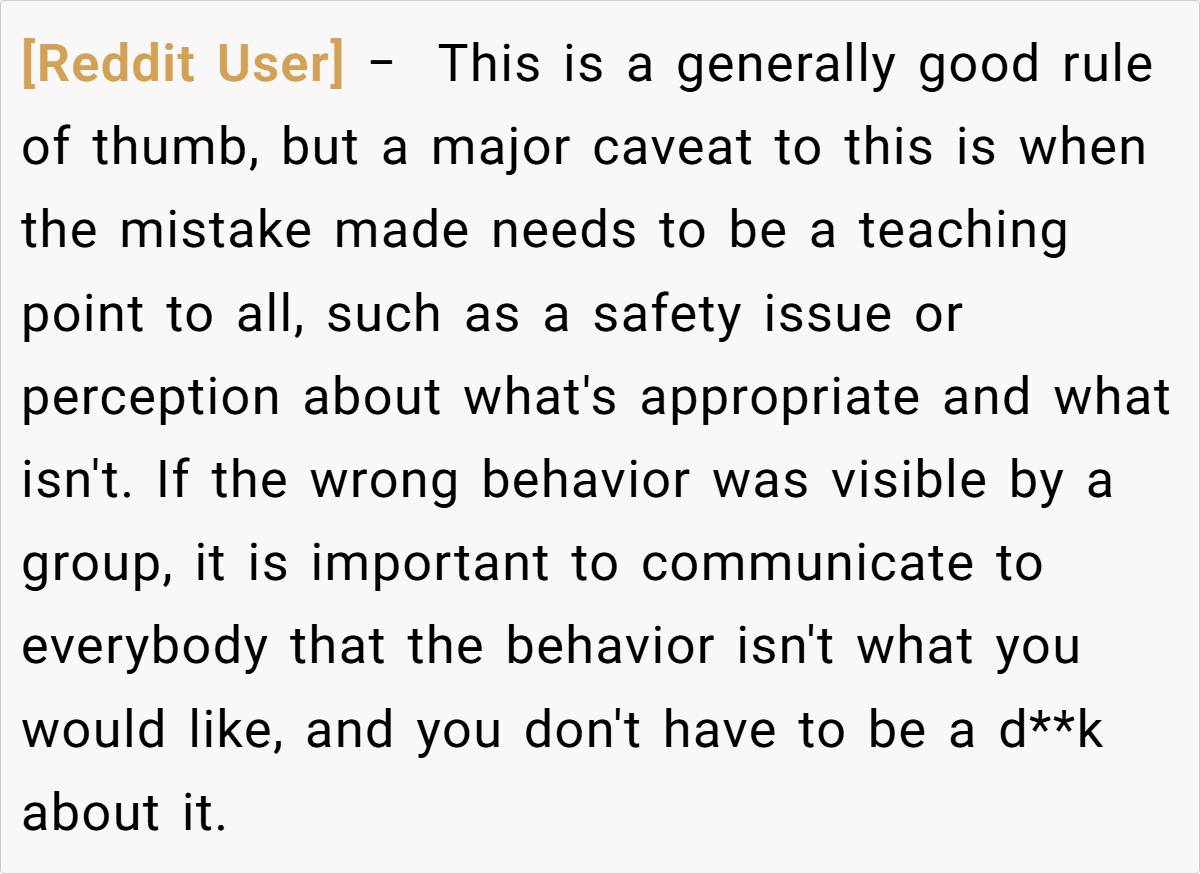 The Reddit community has weighed in with diverse perspectives on this management tip. Many users agree that public praise boosts morale and fosters a team spirit, while private discipline maintains individual dignity.