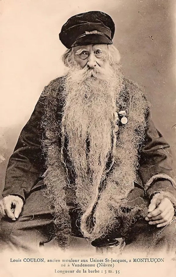 Back in 1904, Louis Coulon made headlines with his extraordinary 11-foot-long beard (3.35 meters) – a record-breaking achievement in France at the time. This wasn’t just a beard; it became a symbol of his eccentric charm and unique personality.