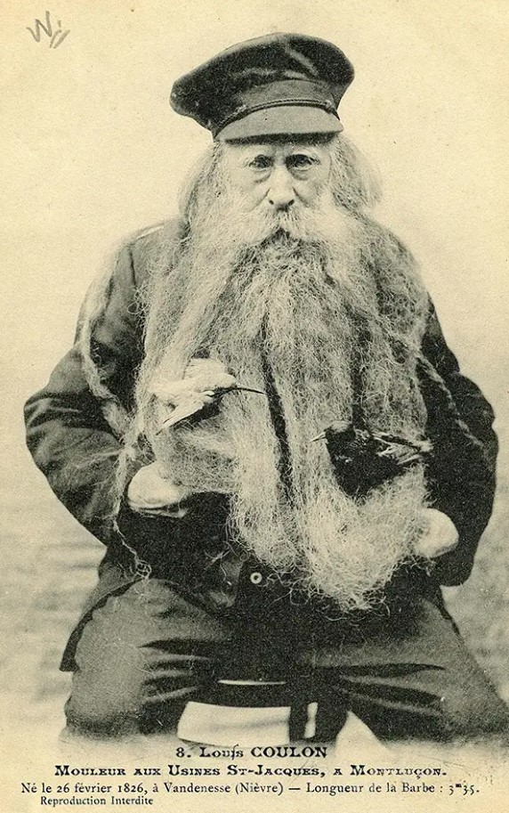 “Coulon is 1.59 m tall, when he walks he has to support his beard with his hand; he lets it go down to the feet, then raises it on his bent right arm and the beard falls on the other side lower than the knee.