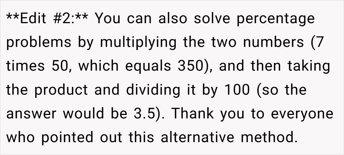 In conclusion, this simple yet ingenious trick not only simplifies percentage calculations but also serves as a reminder of the inherent beauty in mathematical symmetries. We’d love to hear your thoughts—what would you do if you discovered similar shortcuts in everyday problems? Share your opinions, experiences, and even your own math hacks in the comments below. Let’s continue the discussion and celebrate the unexpected charm of numbers!