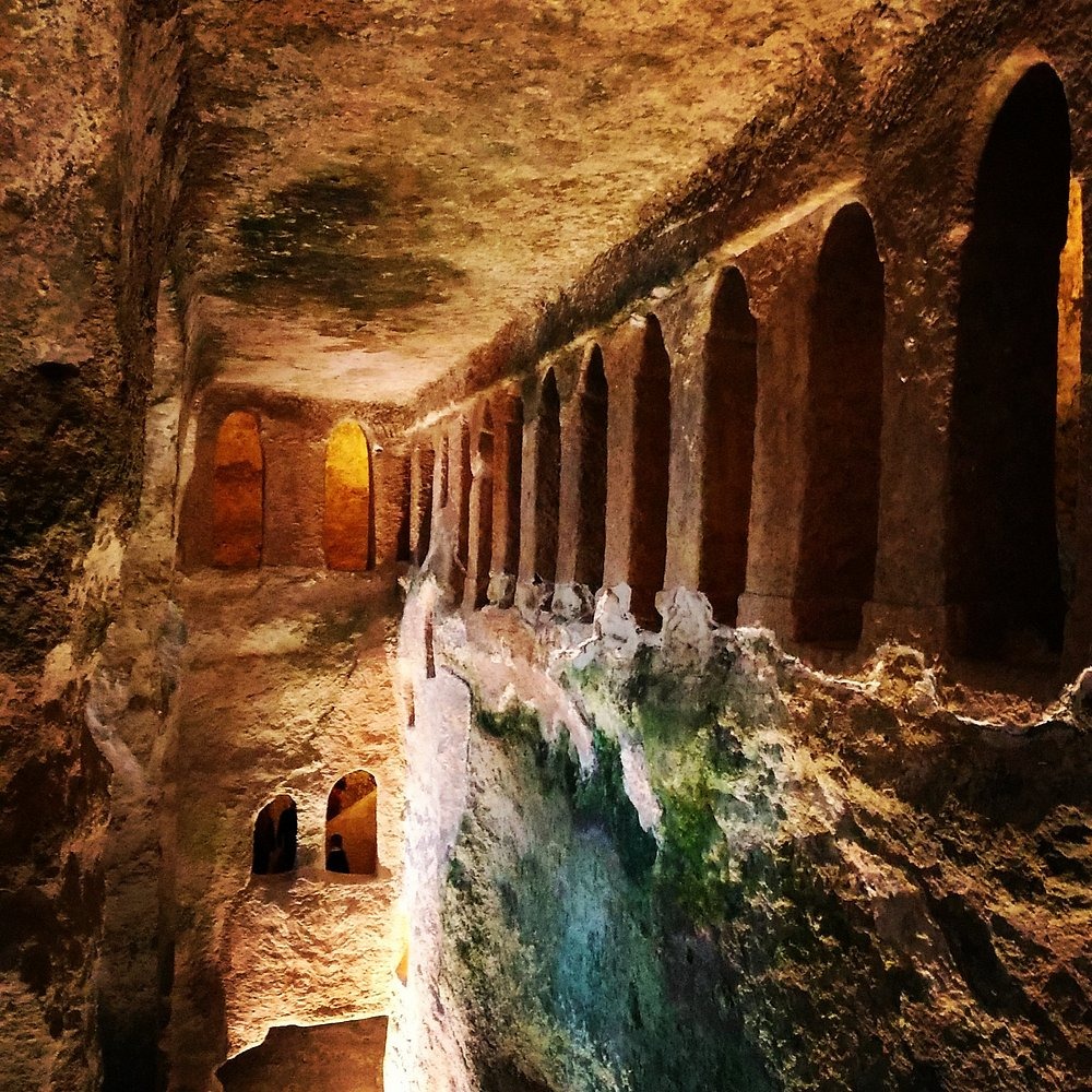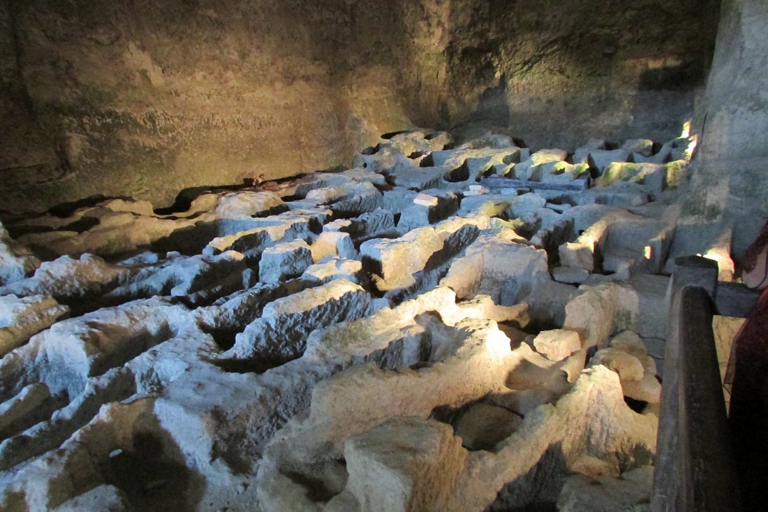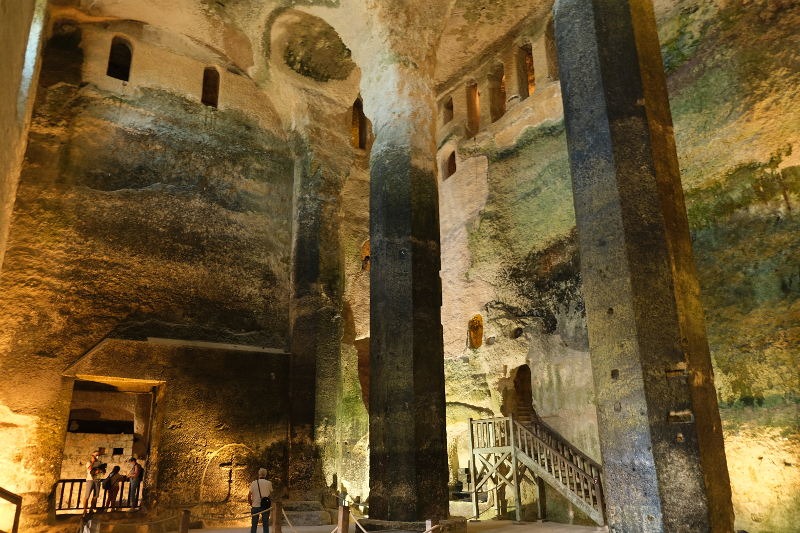 The church also features a necropolis with nearly 170 tombs, each carved into the stone floor and oriented with the head pointing towards Jerusalem.