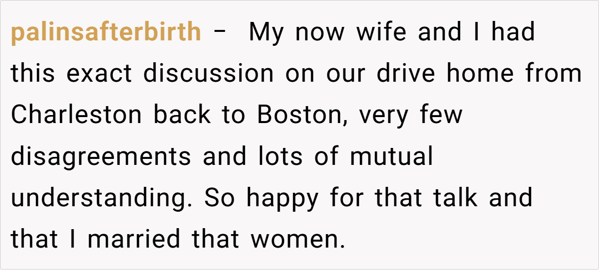 What would you do if you found yourself in a similar situation? How early would you want to have these talks with your partner? Let us know your thoughts—your experiences could help others navigating the same waters.