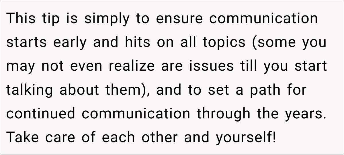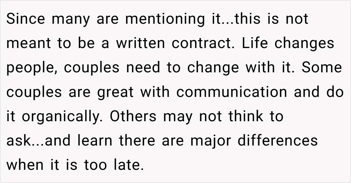 When it comes to the Reddit user’s advice, it’s clear that the goal isn’t to create a rigid contract but to foster an environment where both parties feel comfortable discussing sensitive topics. Many people overlook these discussions, assuming that love will conquer all. However, this often leads to conflict when unexpected issues arise. From financial decisions to how children will be raised, these discussions lay the foundation for mutual respect and understanding.