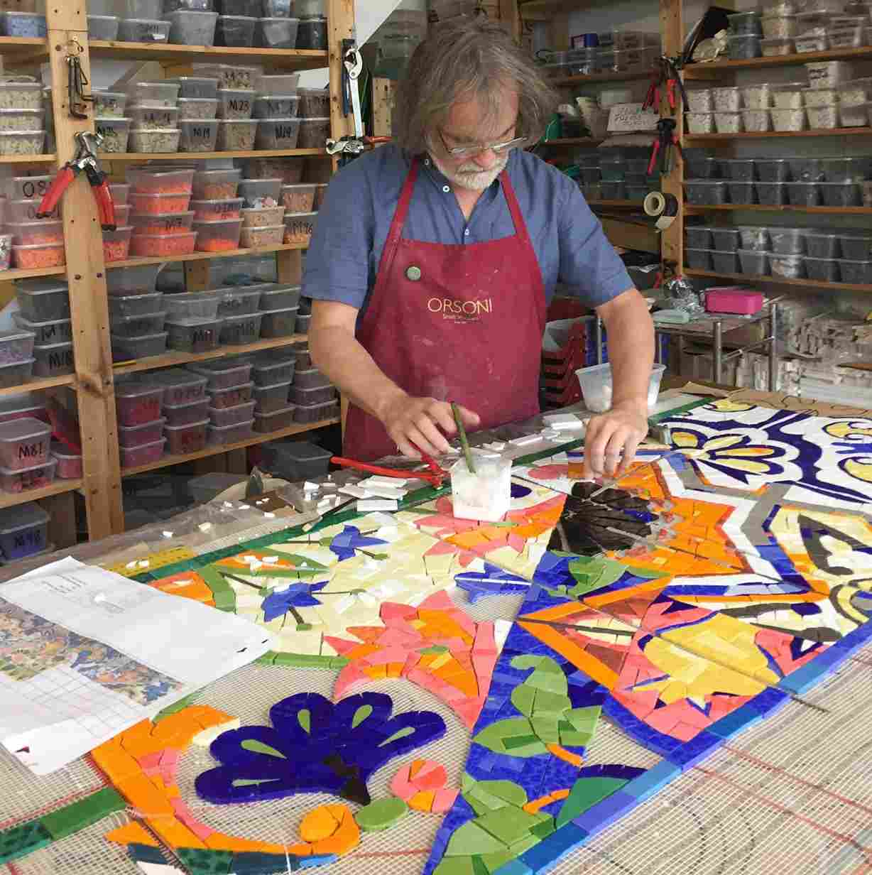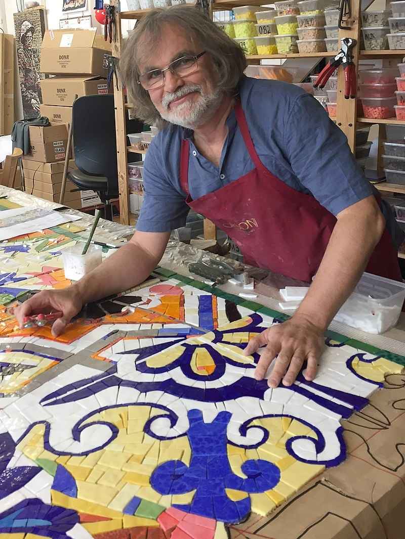 With thirty years of experience and numerous awards, Gary Drostle’s mosaics are in demand internationally. He has completed major commissions in the US and community projects in Colombia and Chile.