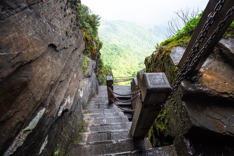 The journey to these temples involves climbing nearly 9,000 steps or taking a cable car to Mushroom Stone, a unique rock formation near the top.