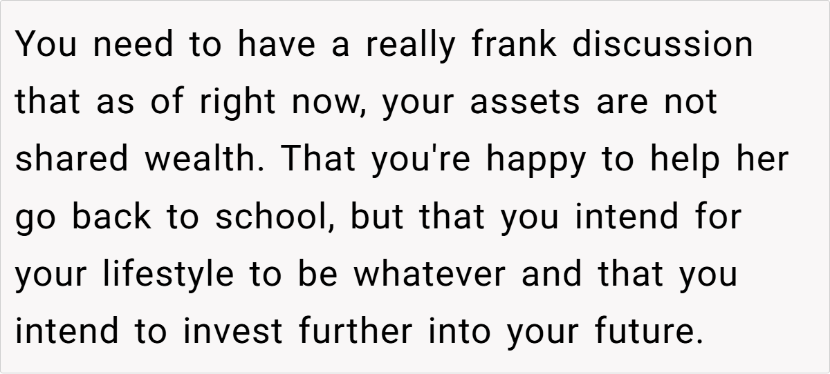 Moreover, relationship experts stress the importance of open, honest dialogue when navigating significant life transitions. Without clear communication, misunderstandings can fester, leaving both partners adrift in their individual worlds. The redditor’s concerns reflect a broader issue: when financial success disrupts shared dreams, the lack of conversation about these shifts can lead to emotional isolation. Professionals advise that couples facing such crossroads consider counseling to bridge the gap between differing visions of the future.