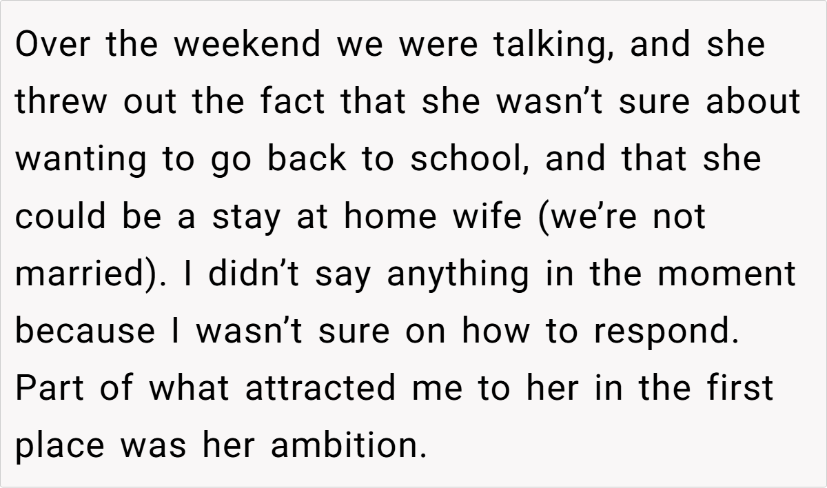 Letting financial success redefine relationship dynamics can lead to unforeseen emotional turbulence. When one partner’s newfound wealth overshadows shared ambitions, the delicate equilibrium of mutual support often falters. In this case, our redditor’s girlfriend—once driven by her nursing aspirations—now seems content with a drastically altered path. This shift raises important questions about identity, purpose, and whether a relationship built on common dreams can survive such a profound change.
