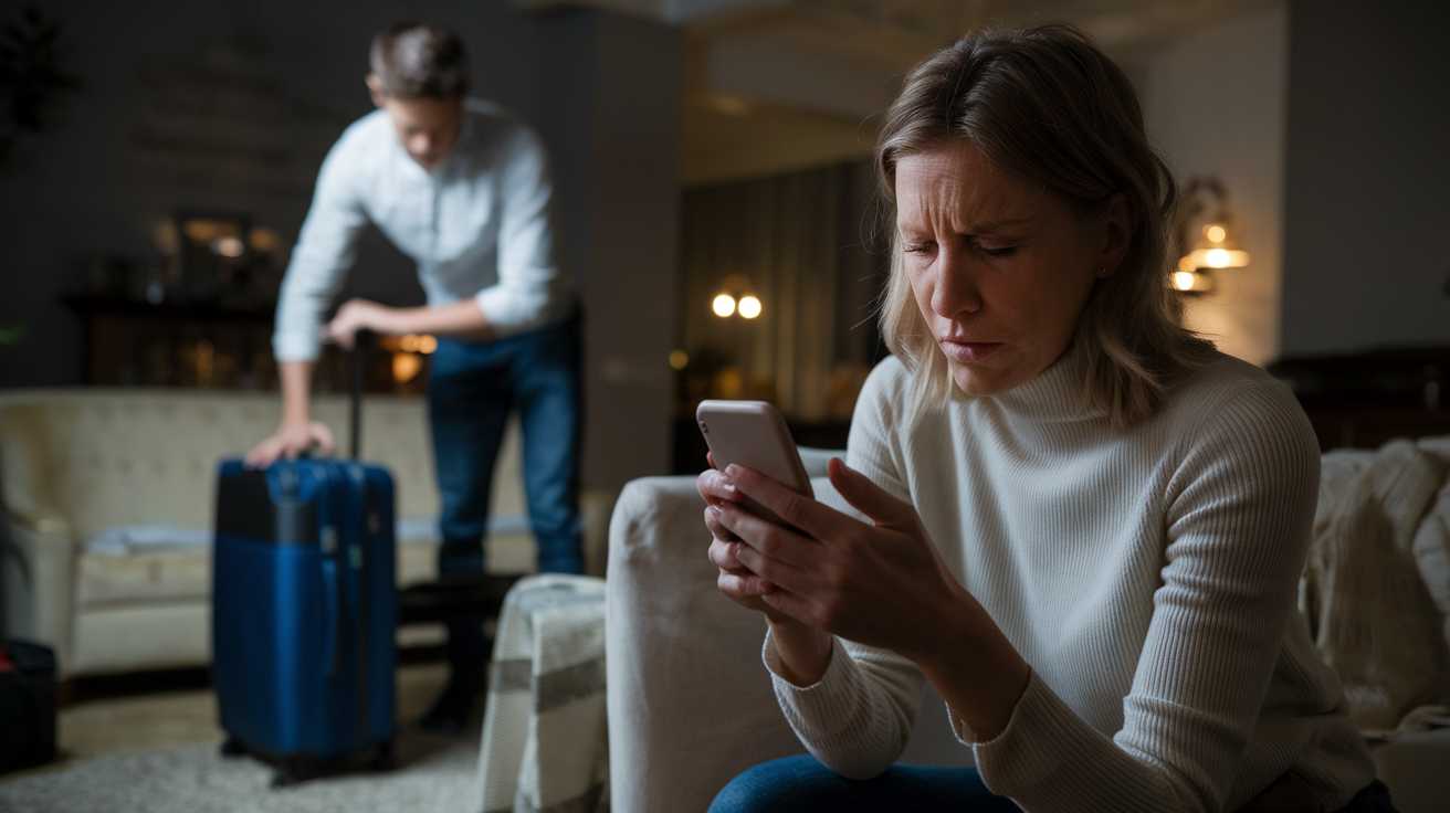 A woman has discovered that her husband, who moved from London to marry her, has been dishonest about his actions. Over the course of their marriage, she noticed changes in his behavior, including emotional distance, secretive phone activity, and ultimately, a lie about a trip to see another woman in Denver.