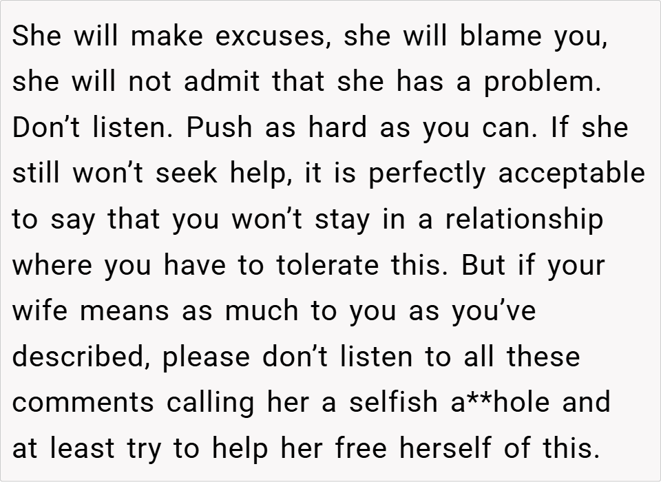 B) throwing guilt of “my delay could could someone their life” is not only complete BS but also extremely detrimental to her exiating mental health problems to the point where you are actually making the whole situation worse.