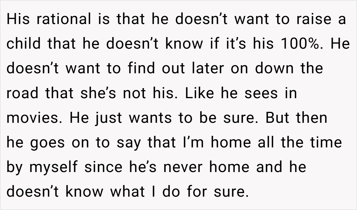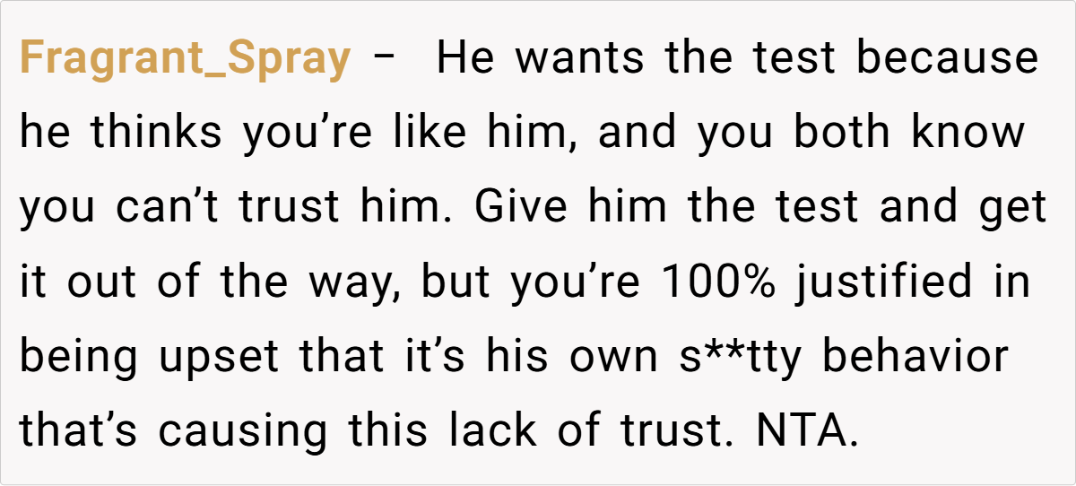 This story highlights a harsh reality: sometimes, the person who is most distrustful is actually the least trustworthy. While a paternity test may seem like a minor request, it speaks volumes about the state of the relationship. At the heart of it, this isn’t about biology—it’s about respect, trust, and emotional security.