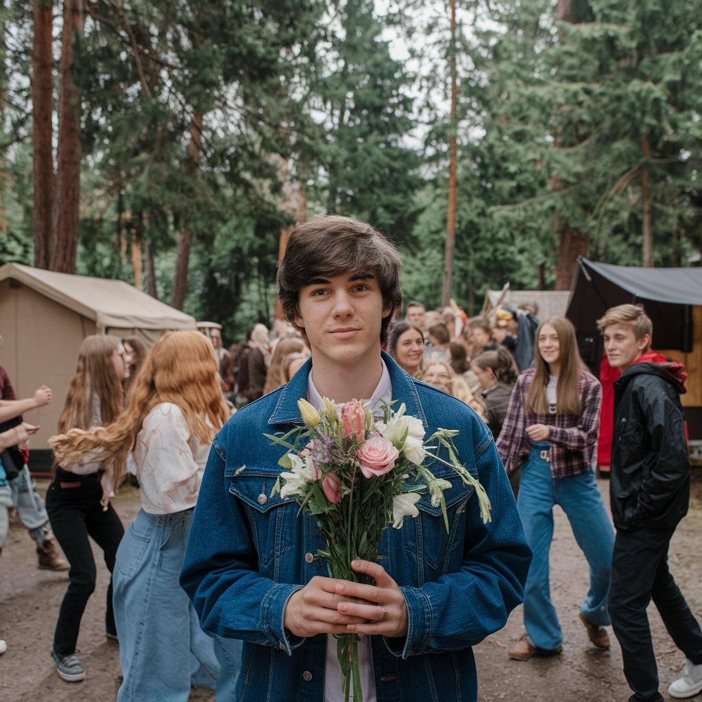 Before I could figure it out, Kaito appeared, holding a fresh bouquet of roses. His eyes sparkled, and he walked toward me with determination. He stood before me, smiling shyly, but his eyes couldn’t hide his happiness.