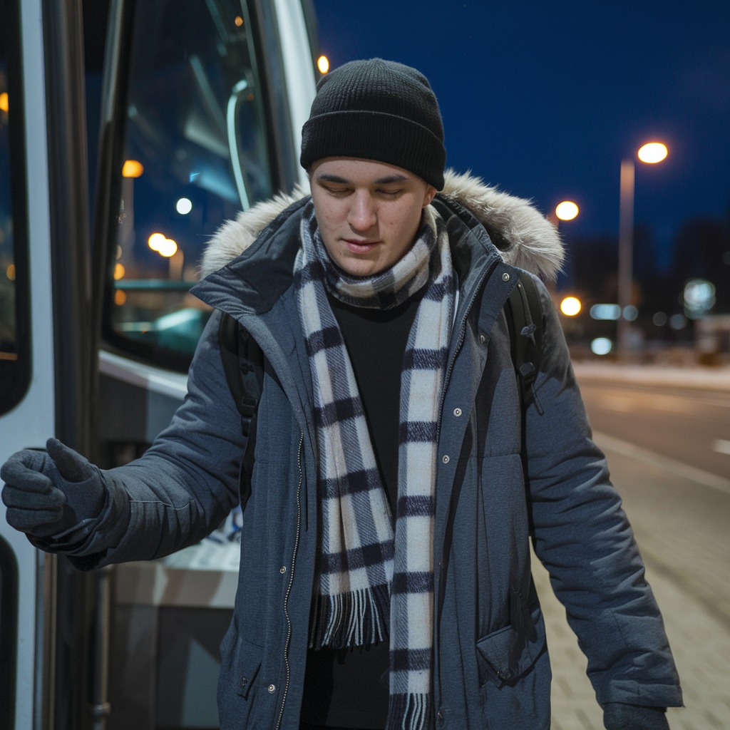 As I stepped off the bus, the freezing air hit me like invisible daggers cutting through my heavy coat. My breath turned into faint white clouds that hung briefly in the frosty air.