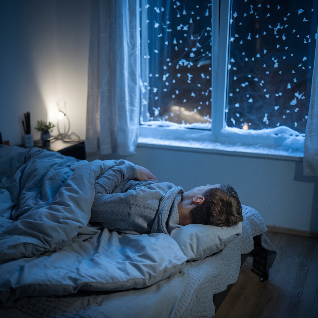 Walking inside, the warmth of the house greeted me, offering some relief from the biting cold outside. After briefly greeting my parents, I headed to my old room, buried myself in a thick blanket, and let the warmth envelop me. Through the frosted window, I could see the endless cascade of snowflakes dancing against the dark sky.