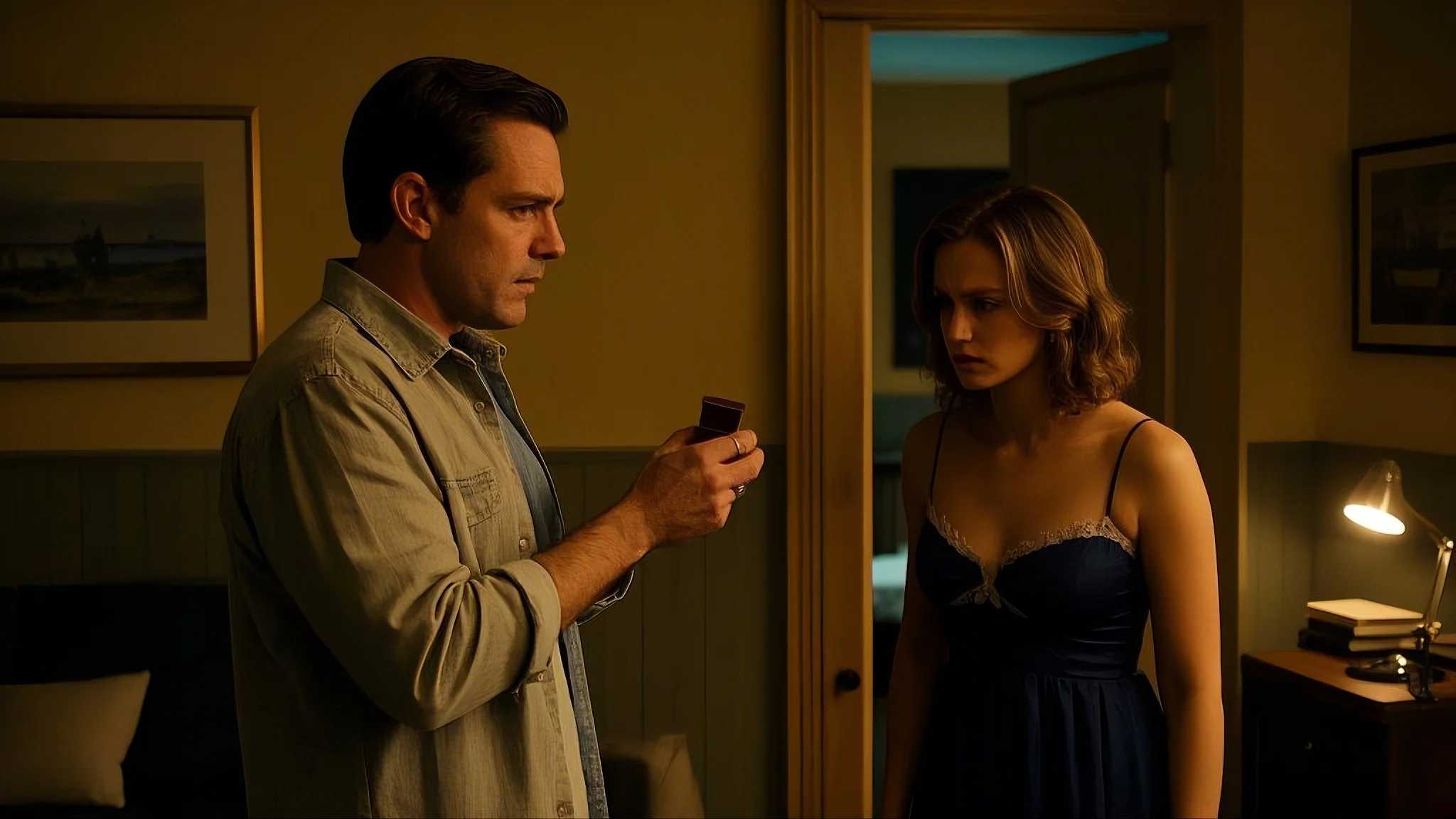 A man planning a surprise proposal finds himself in a tricky situation after his girlfriend becomes suspicious of his secretive behavior. Trying to hide the engagement ring and keep the proposal a surprise, he inadvertently raises her suspicions, leading to tension between them.