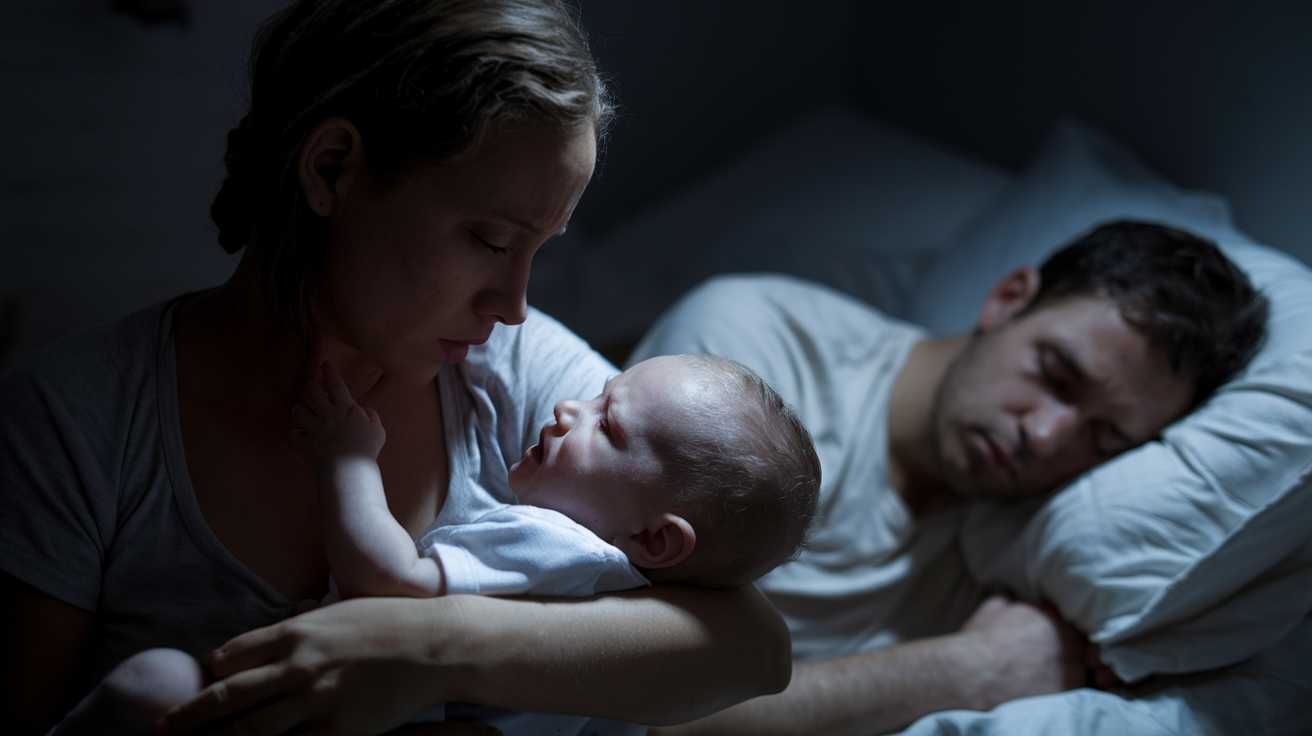 If that means that you go to sleep when he gets home from work so he can take care of the baby until he goes to bed, then that’s what you need to do. You know he can’t wake up, so together figure out a way for you to be able to sleep.