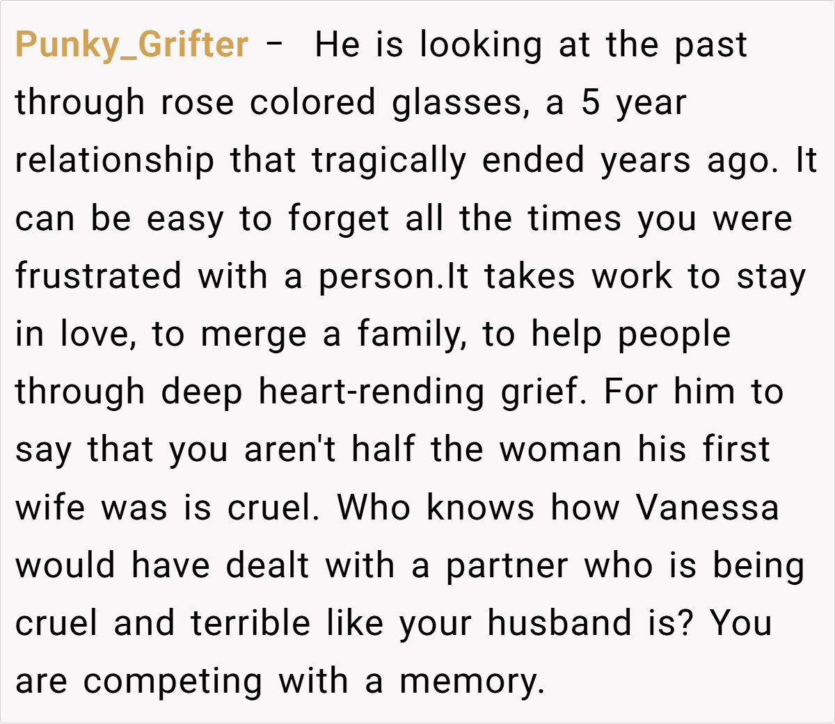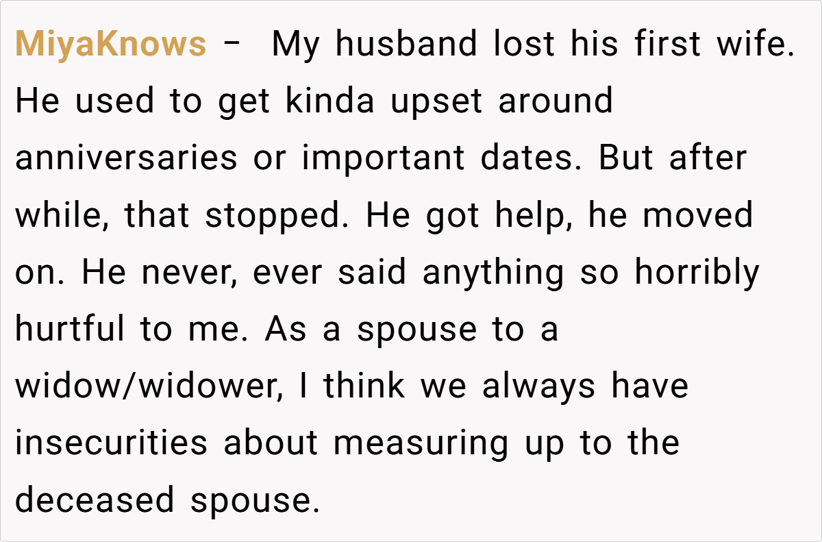 ‘My husband [44/M] told me he wished I [37/F] was dead instead of his first wife. I’m devastated.’
