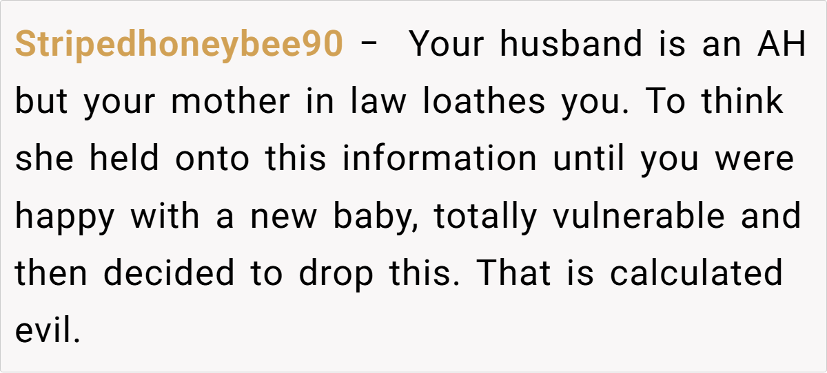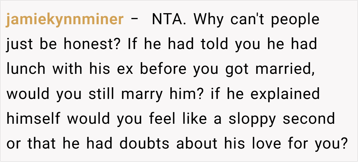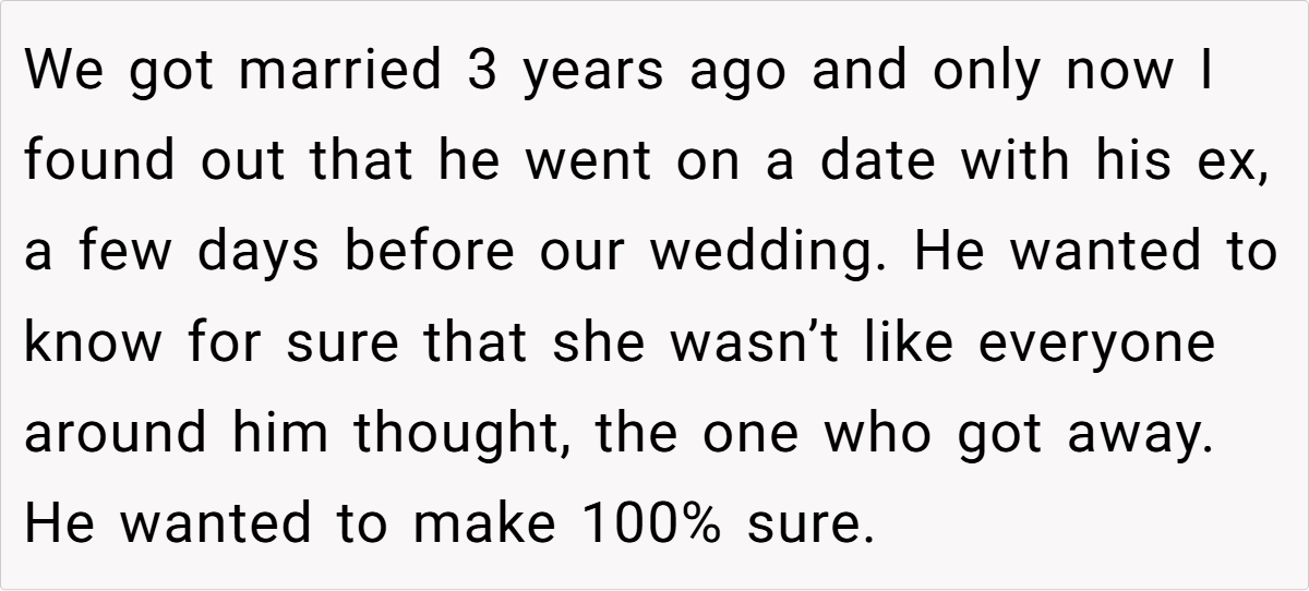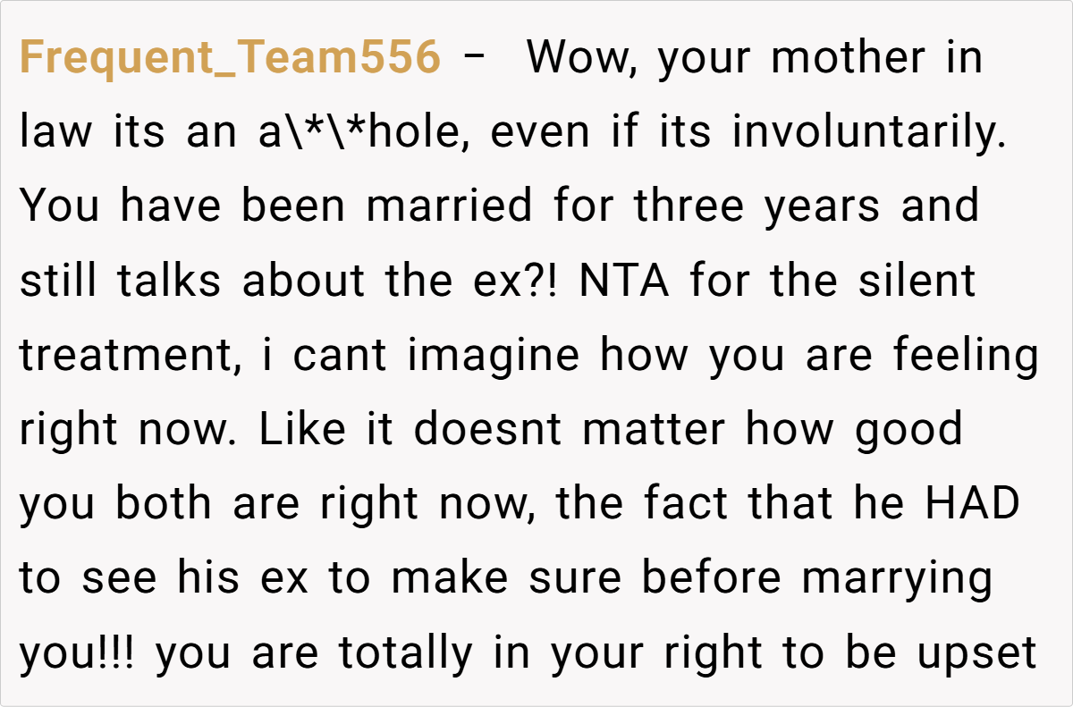 Now, three years into your marriage, the shock lingers. The whispers from family members and even your husband’s own mother—who casually mused about what might have been—only add to the sting. You’ve chosen to give him the silent treatment for a week, not to manipulate or punish him but because you simply cannot face him right now. The burning question remains: are you in the wrong for needing this space?