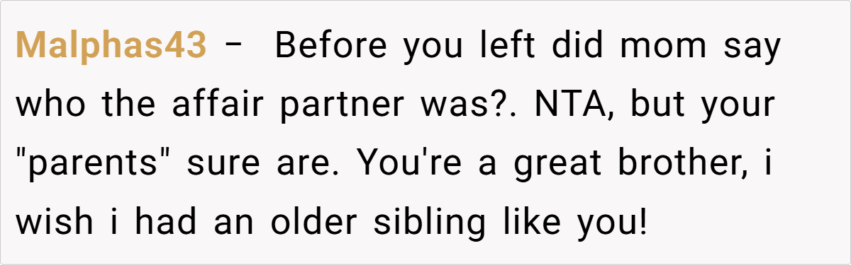 The overwhelming hurt of watching a sibling devalued and cast aside has forced him to make a heart-wrenching decision: cutting his parents out of his life. His resolve is both defiant and protective—a necessary stand against the toxic dynamics that have haunted his family for years.