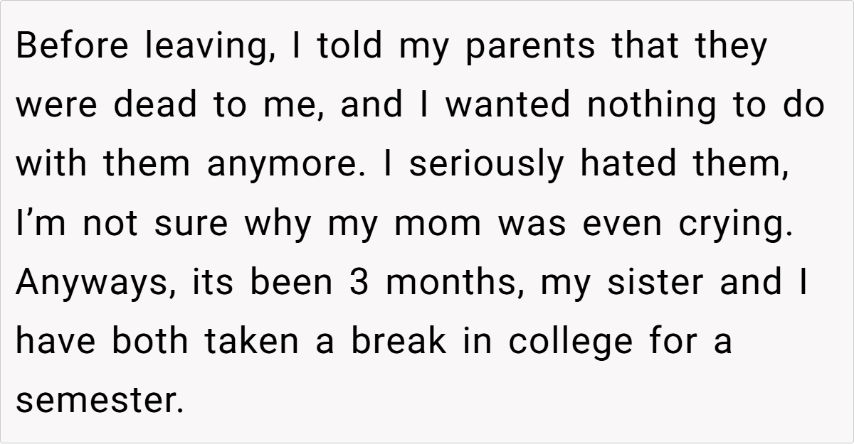 Finally, the decision to cut off one’s parents—especially after years of mixed treatment—reminds us that every relationship has limits. No one deserves to be made to feel disposable. By stepping away, the young man is not rejecting love entirely; he is choosing to redefine his version of healthy love and respect in his life.