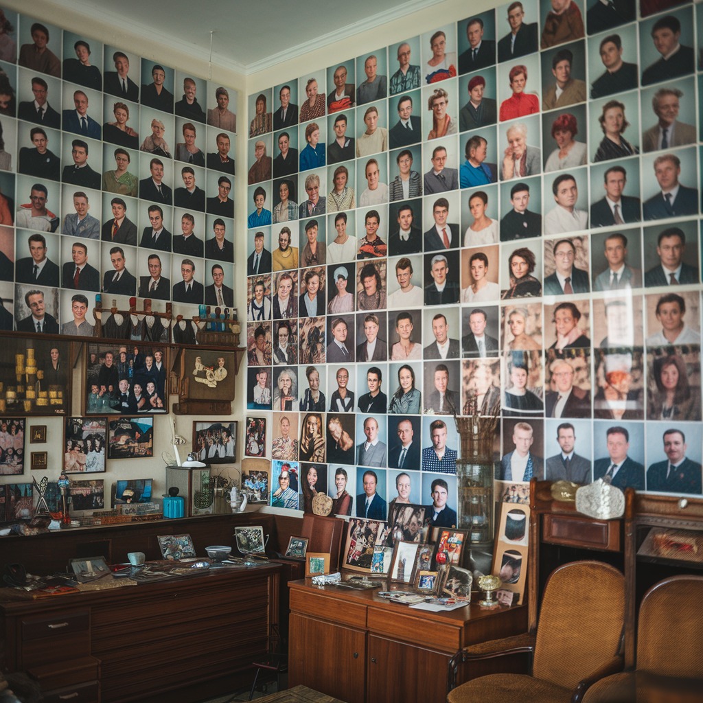 The faces stared out, stern and unyielding, their gazes seeming to pierce through me. I felt a chill down my spine, as though they were standing right behind me.