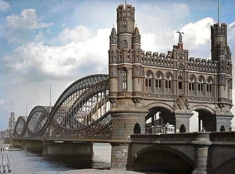 The original Neue Elbbrücke was heavily damaged during World War II, as were many other structures in Hamburg.