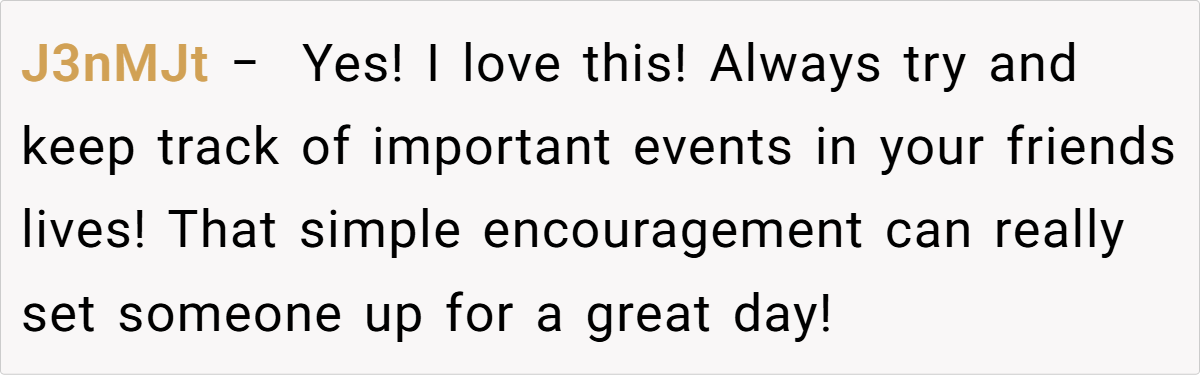 From enthusiastic affirmations to playful reminders of friendship’s importance, Redditors share a variety of perspectives. Some celebrate the idea as a surefire way to make someone’s day, while others inject a bit of humor about the quirks of office life. The comments remind us that even in a digital age, the warmth of a thoughtful message is irreplaceable, and that remembering special moments can turn an ordinary day into an extraordinary one.