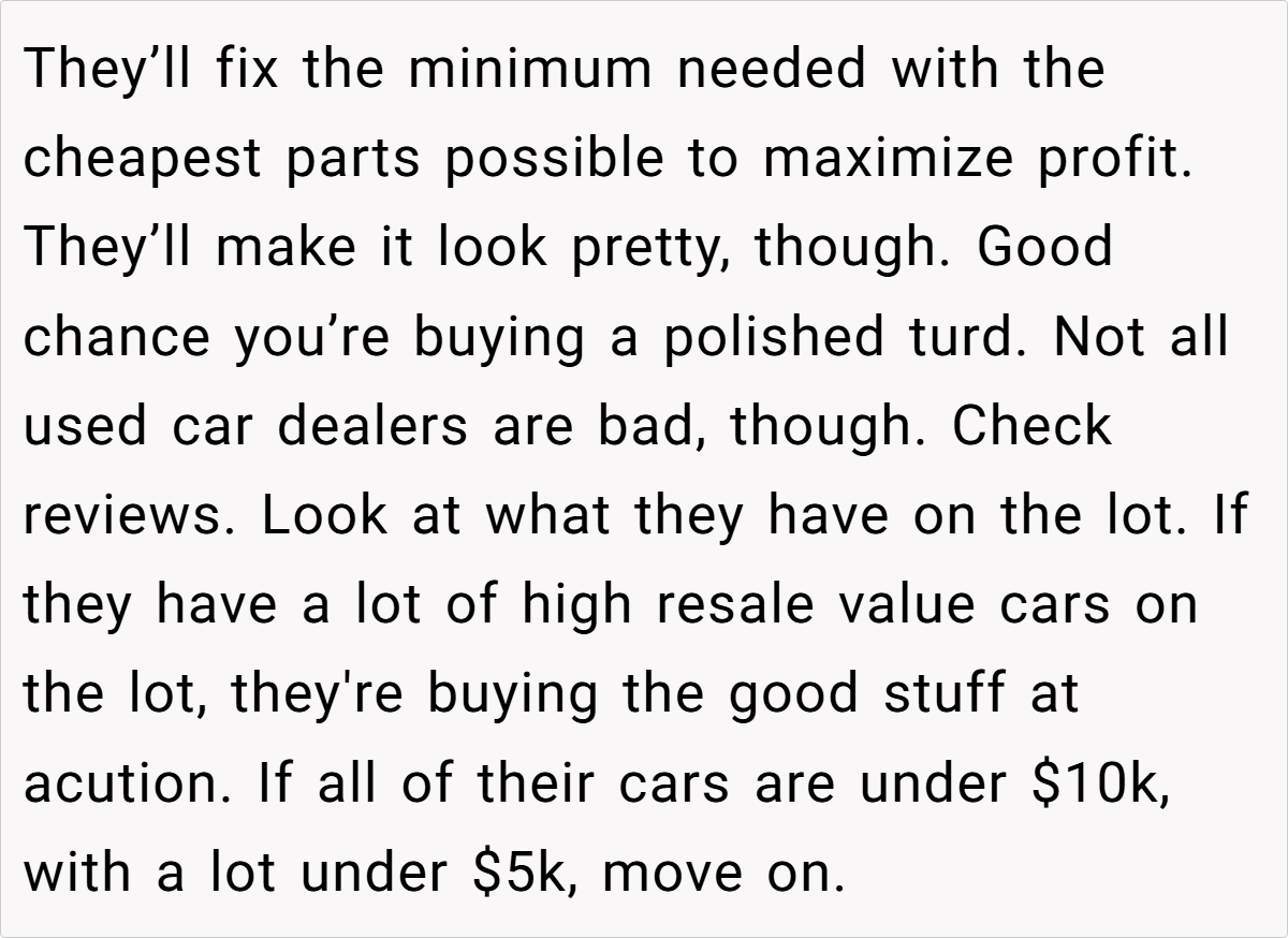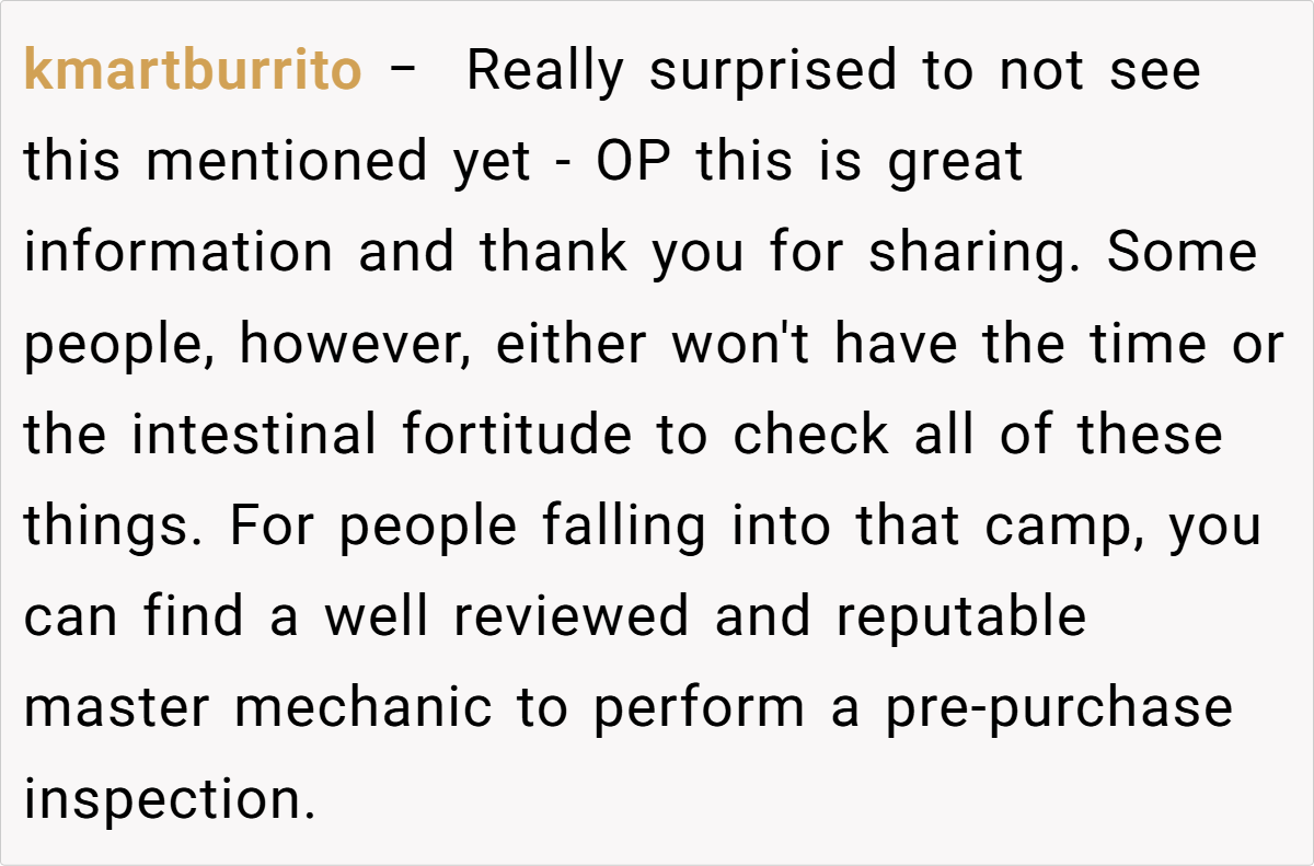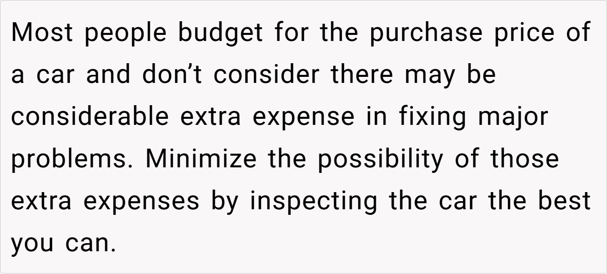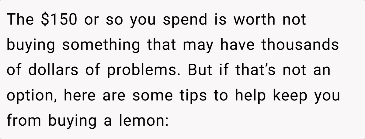 One redditor highlighted that even a quick scan of the engine codes can be a lifesaver, while another joked about their misadventures with “polished turds” from shady dealerships. The community agrees that a thorough pre-purchase inspection is indispensable, with many sharing personal anecdotes of unexpected repair bills and lingering regrets.