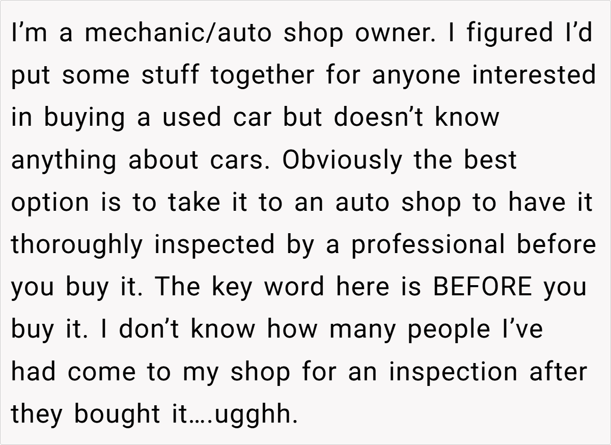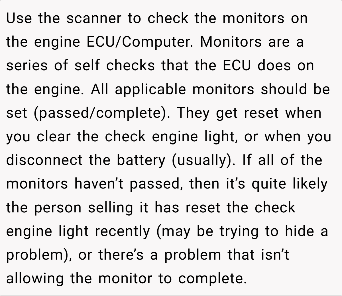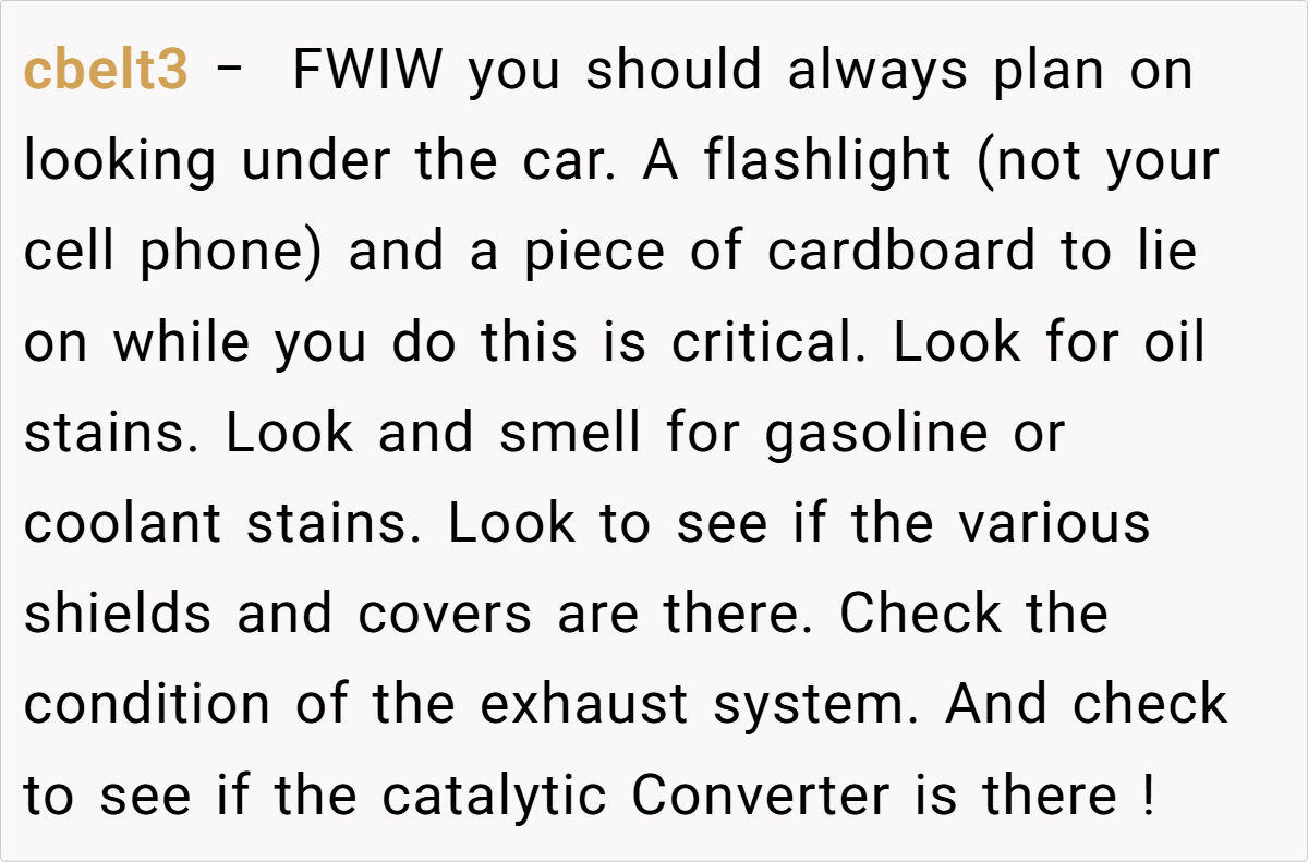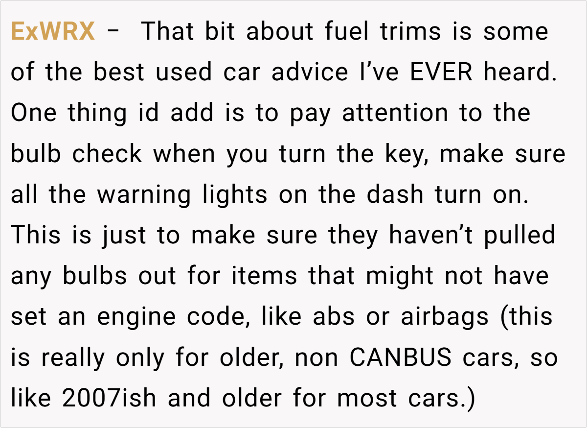 Let’s dive into the expert analysis behind these practical tips. The original post lays out a comprehensive checklist—from using an OBD scanner to checking for engine codes and verifying fuel trims—that can protect you from a host of hidden issues. One key piece of advice is to always have the car inspected before you buy it.