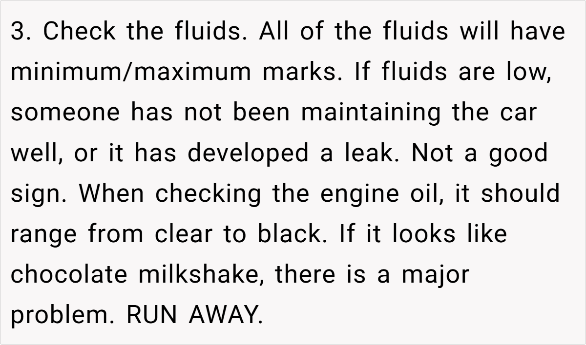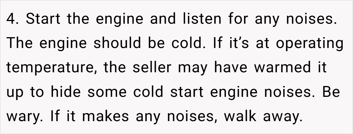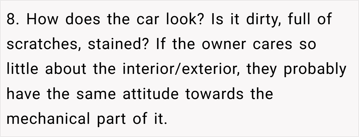 Another user pointed out the importance of checking maintenance records, emphasizing that consistent oil changes and service records can be the best indicator of a car’s true condition. Yet another member stressed that if something doesn’t pass the “feel test”—from abnormal engine sounds during a test drive to dubious fluid levels—it’s best to walk away. These voices of experience create a tapestry of advice that blends technical know-how with the wisdom of trial and error.